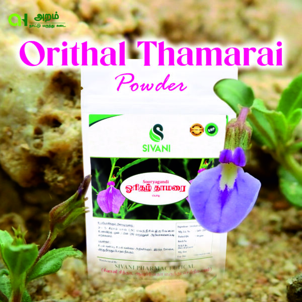 Orithal Thamarai Powder, prepared from the medicinal Orithal Thamarai herb (Hygrophila auriculata), is a revered tonic in Siddha and traditional Tamil medicine. Known as the тАЬMenтАЩs Ginseng,тАЭ this herb is especially used to boost energy, stamina, muscle strength, and male vitality. It also helps balance hormones, increase immunity, and support kidney and liver functionтАФmaking it an excellent wellness supplement for overall rejuvenation.