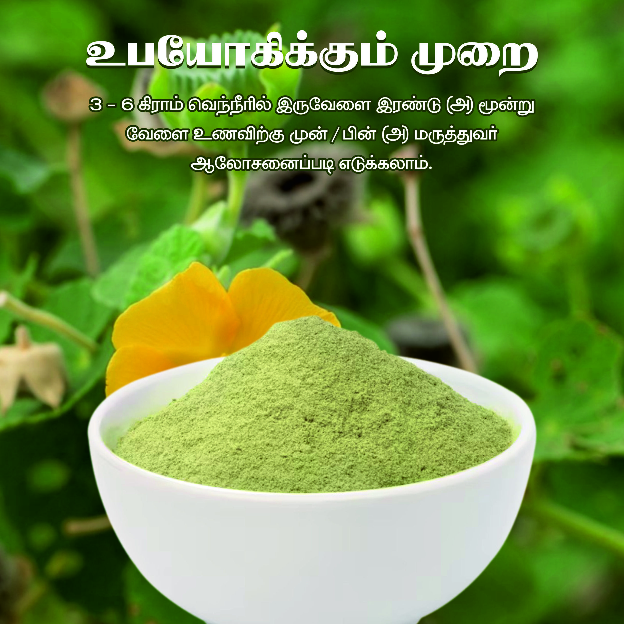 Thuthi Powder is prepared from the leaves of the Thuthi plant (Abutilon indicum), a highly regarded herb in Siddha and Ayurvedic medicine. Traditionally used to treat piles, constipation, skin diseases, and inflammation, Thuthi is a powerful herbal detoxifier and rejuvenator. It helps cleanse the digestive tract, soothe swelling, and support skin healing. Ideal for internal cleansing and external application for chronic skin and inflammatory conditions.