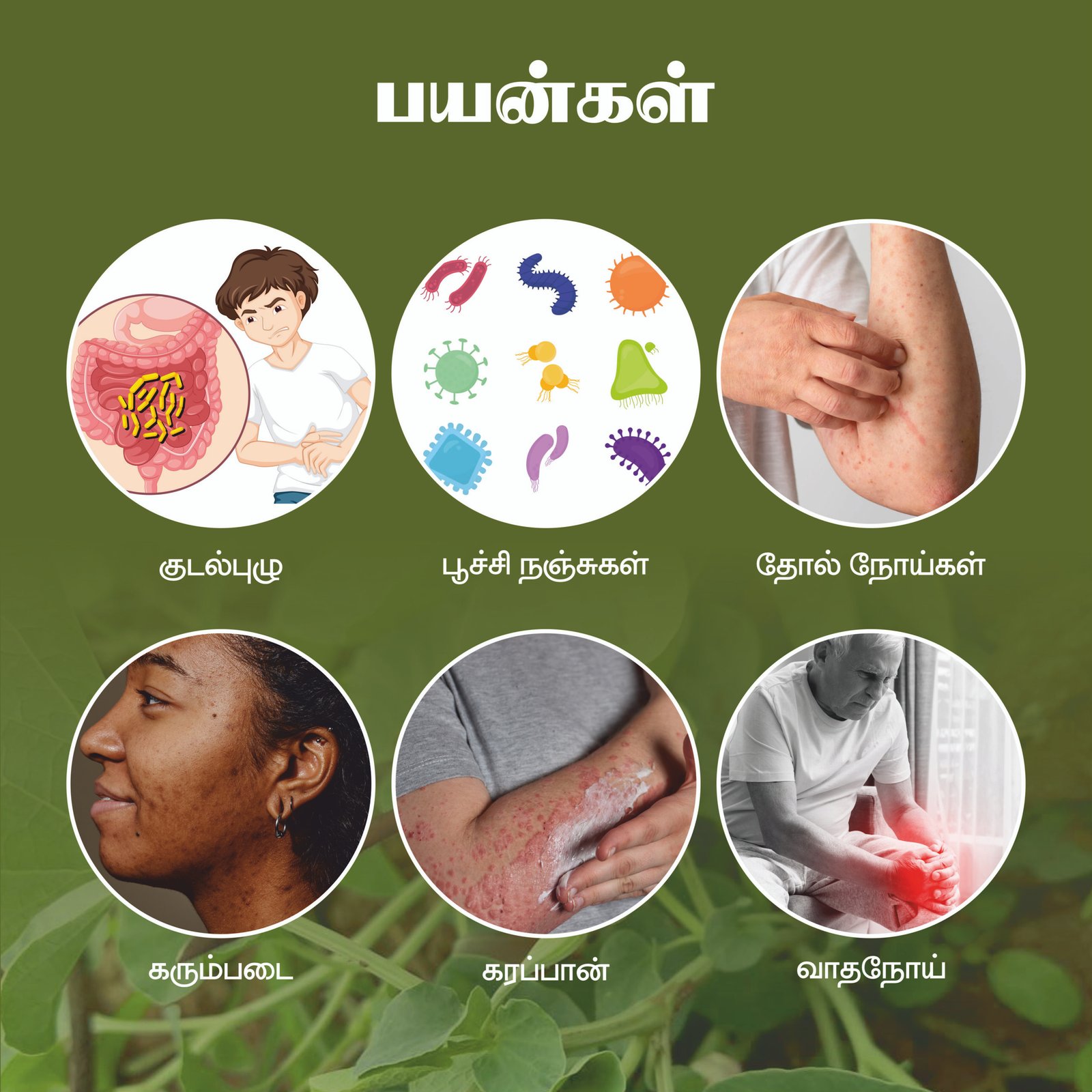 Aadutheendapalai Powder is prepared from the dried leaves of the Aadutheendapalai plant (Aristolochia bracteata). It has been widely used in Siddha & Ayurvedic medicine for centuries due to its strong healing, detoxifying, and anti-inflammatory properties.