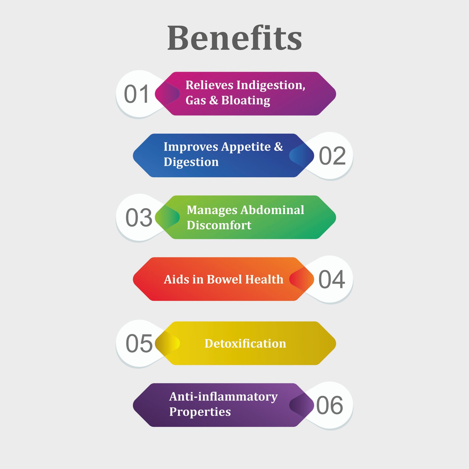 It is widely used to improve digestion, relieve indigestion, bloating, and gas, and to support respiratory and immune health.