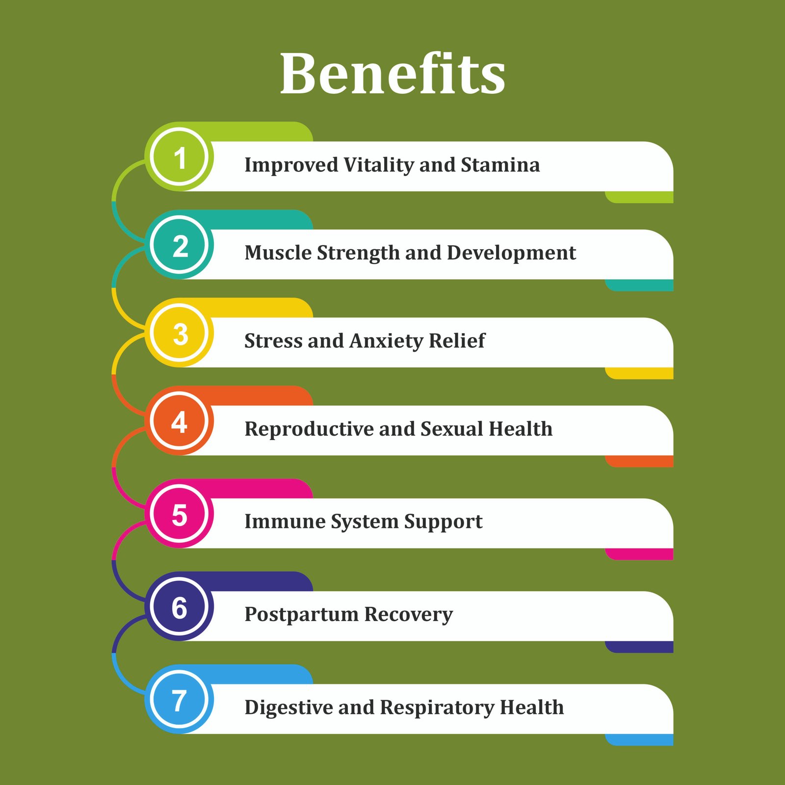 It helps strengthen the body, improve muscle tone, boost immunity, and support physical and mental endurance.