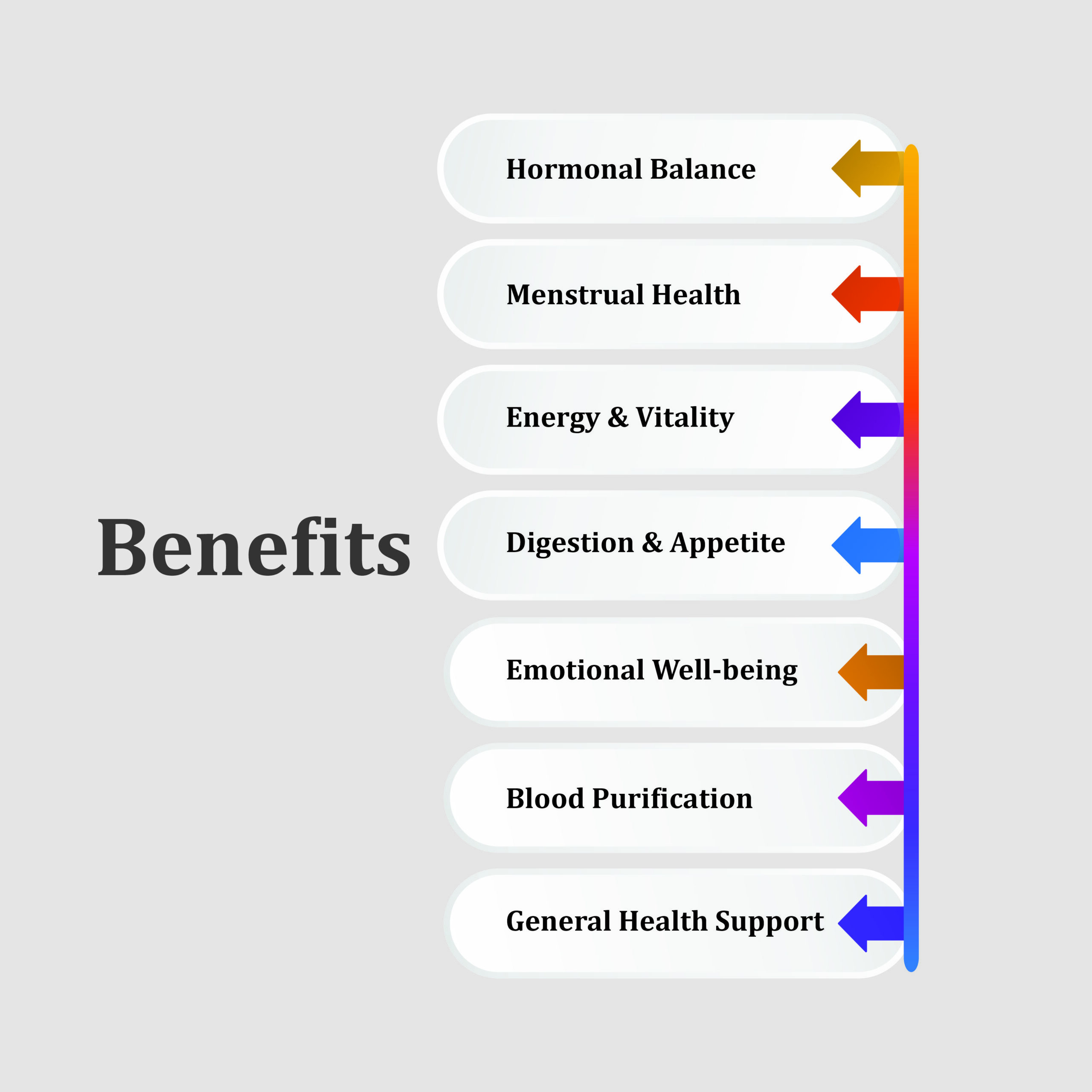 It helps manage menstrual discomfort, abdominal cramps, back pain, pelvic pain, weakness, anemia, and loss of appetite. This tonic supports uterine health, improves blood purification, and helps restore physical and mental strength.