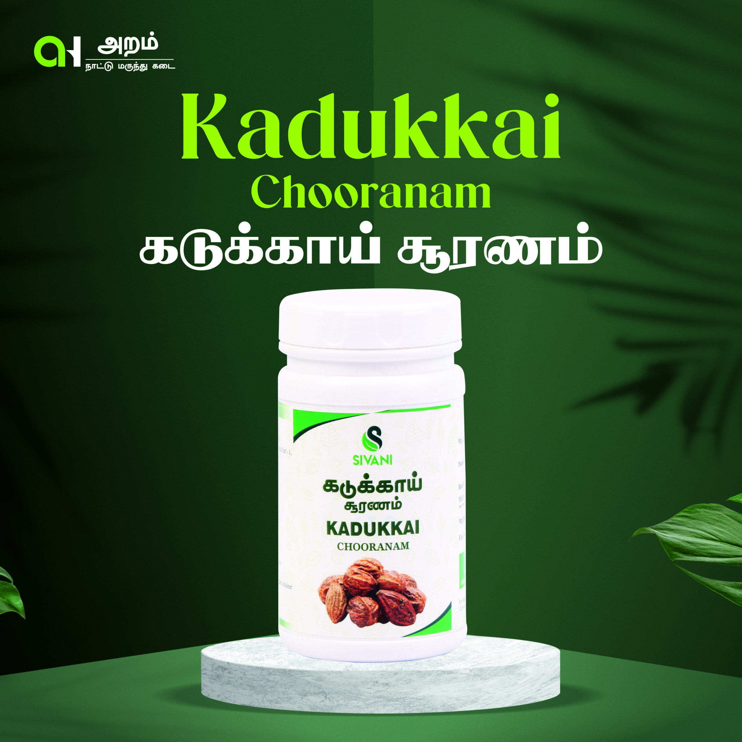 Kadukkai Chooranam (கடுக்காய் சூரணம்) is a classical Siddha formulation prepared from dried Kadukkai (Haritaki) fruit. It is well known for its cleansing and balancing properties, especially for digestive health.