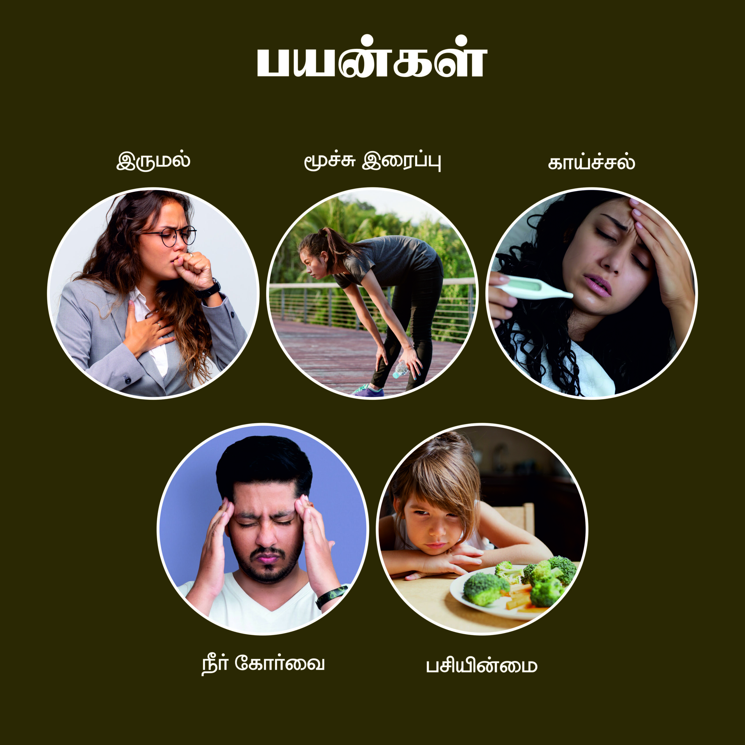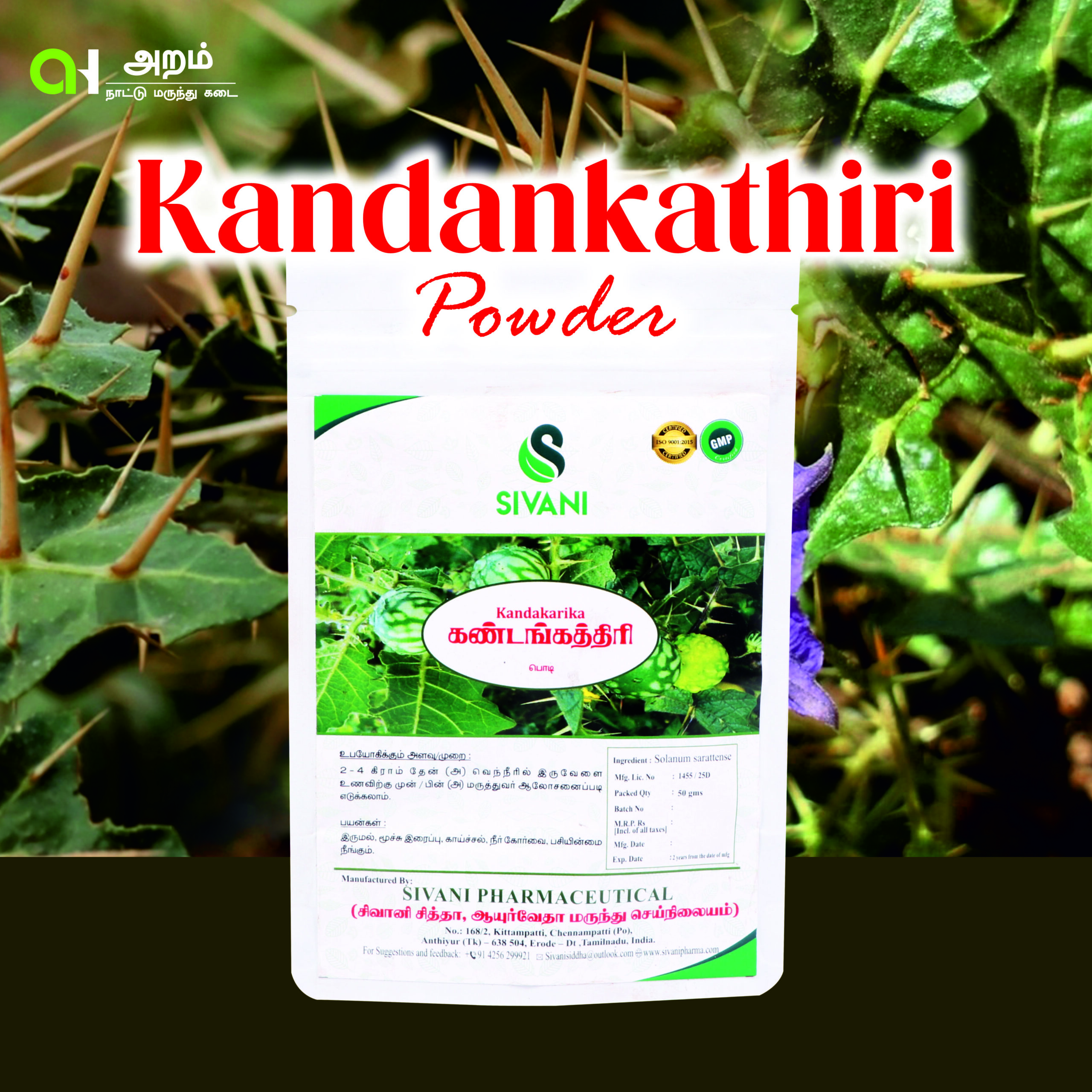 Kandankathiri Powder helps in treating respiratory diseases such as asthma, wheezing, cough, cold, and bronchitis. It is also useful for digestive disorders, urinary problems, fever, and skin diseases.