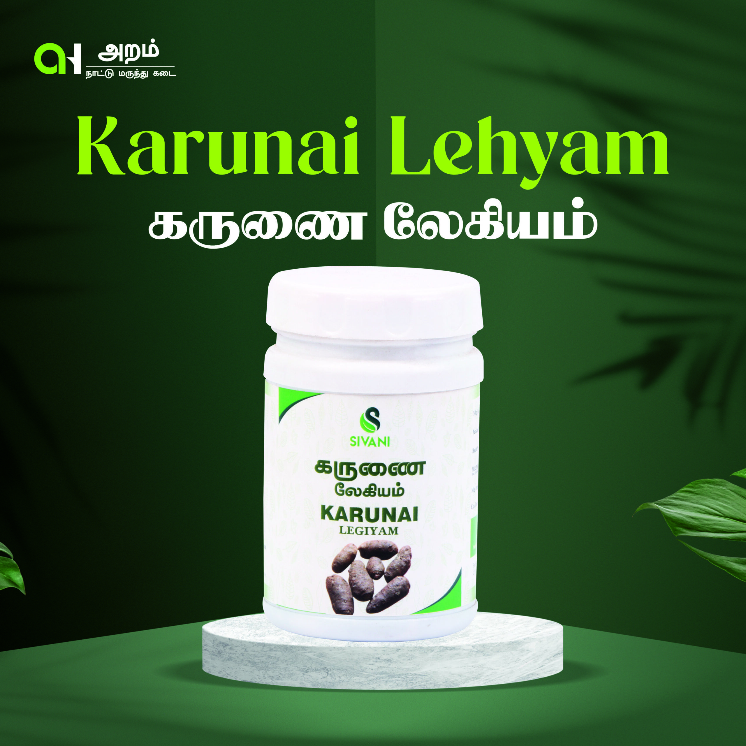 Karunai Lehyam is prepared using Karunai Kizhangu (Elephant Foot Yam), a well-known herb in Siddha medicine.