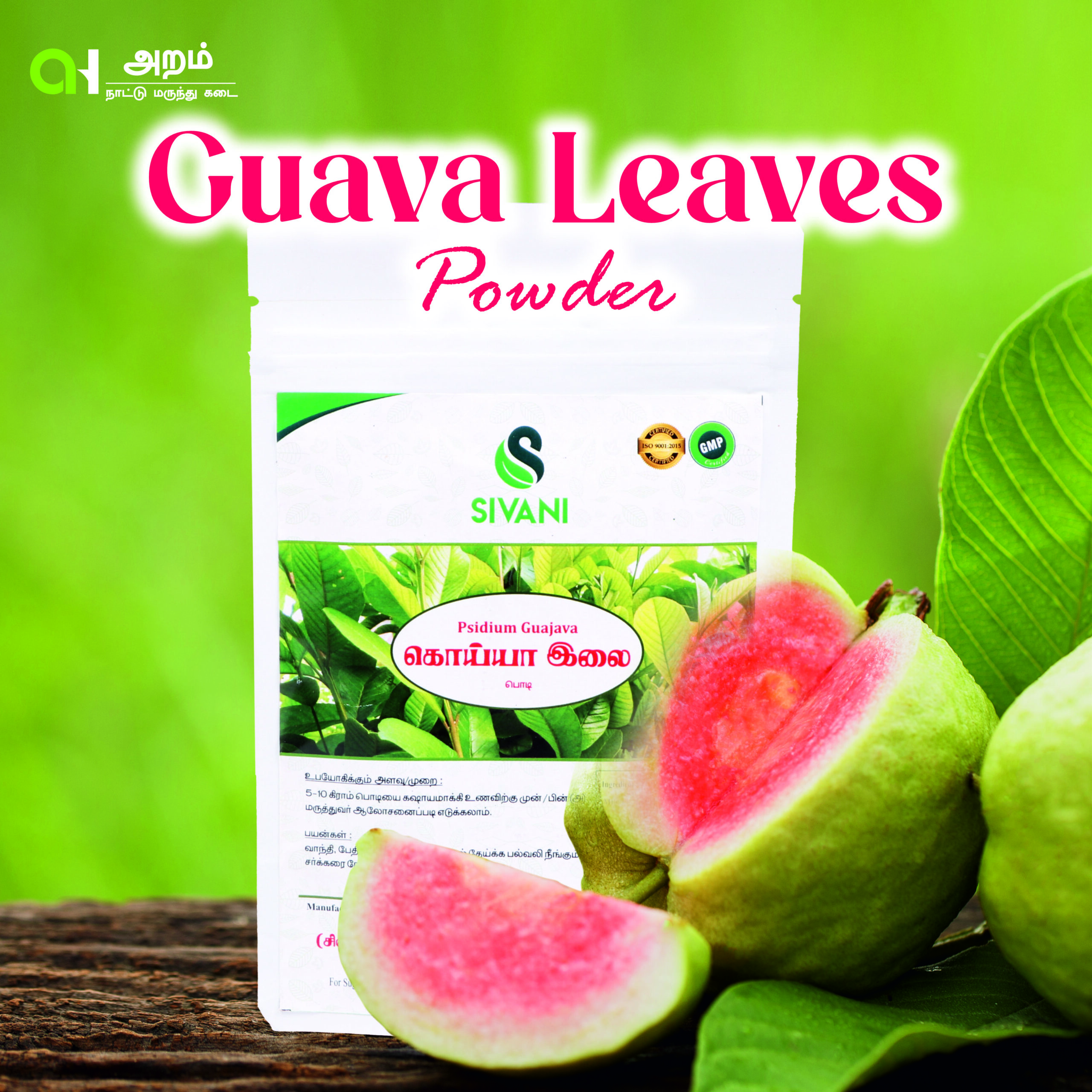 Koiya Ilai (Psidium guajava – Guava Leaves) is widely used in Siddha, Ayurveda, and folk medicine for its antioxidant, antimicrobial, and anti-diabetic properties.