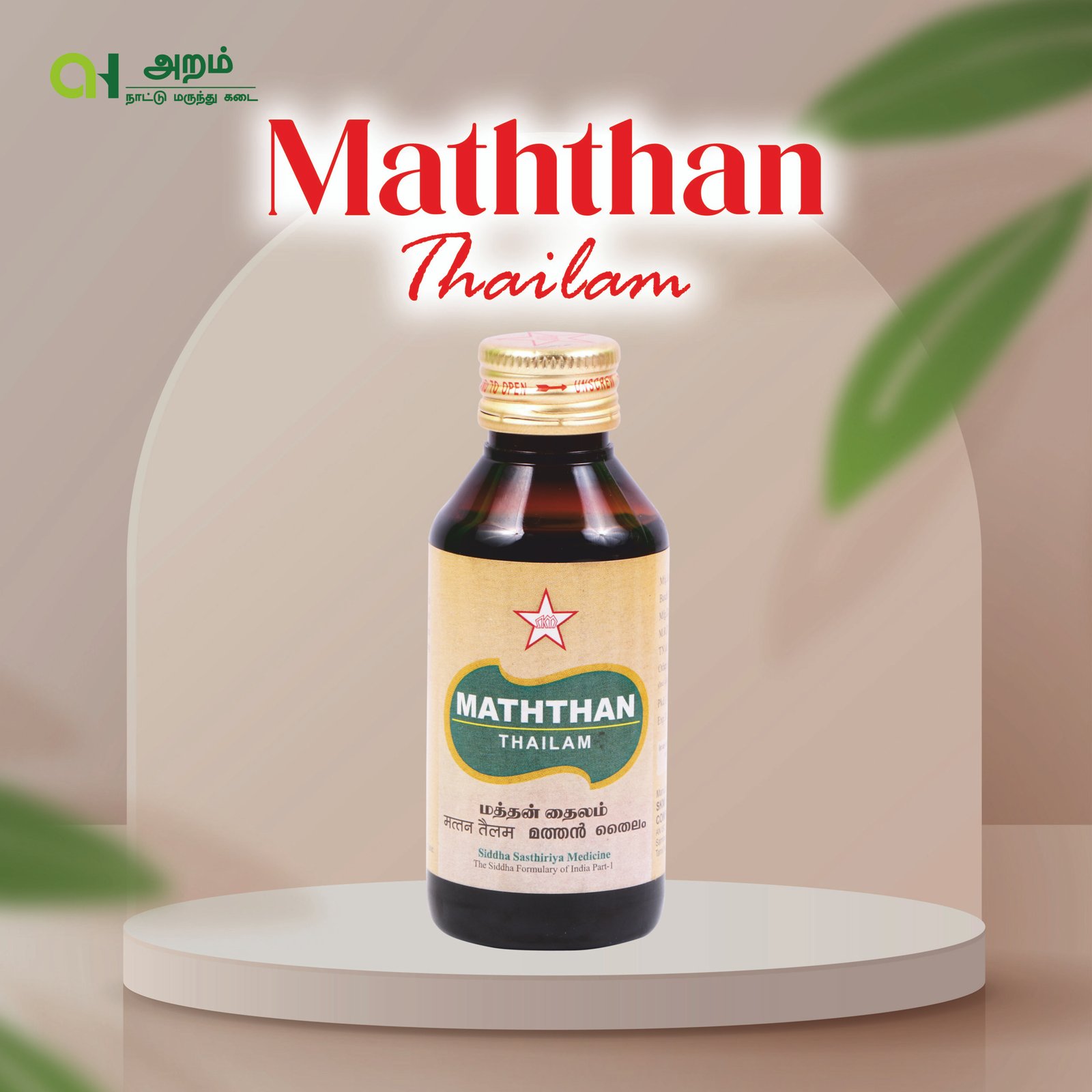 Maththan Thailam is prepared using Maththan (Datura) based Siddha formulation, traditionally used for external application.