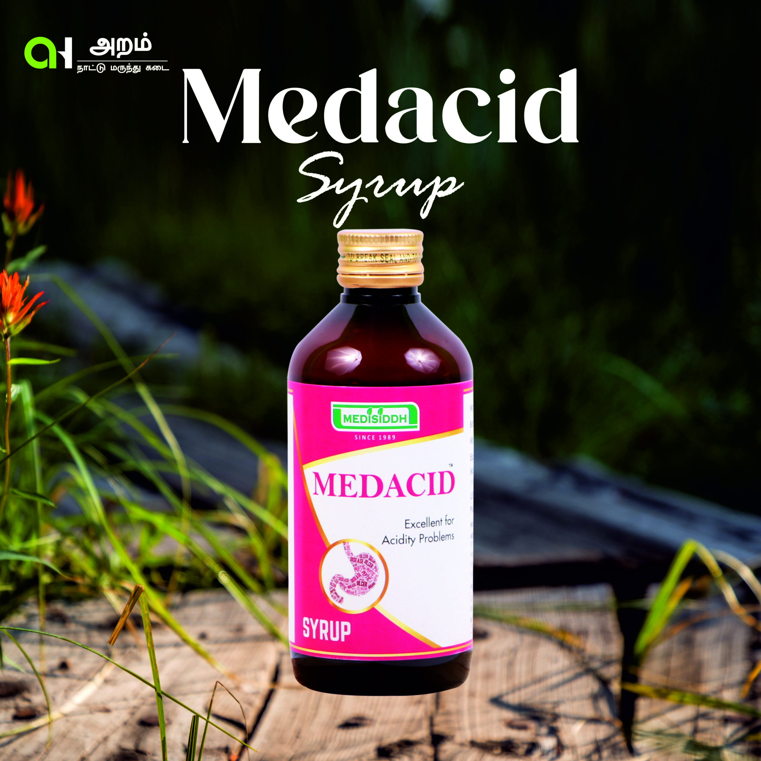 Medacid Syrup is a Siddha-based digestive syrup that helps relieve acidity, heartburn, and supports healthy digestion.