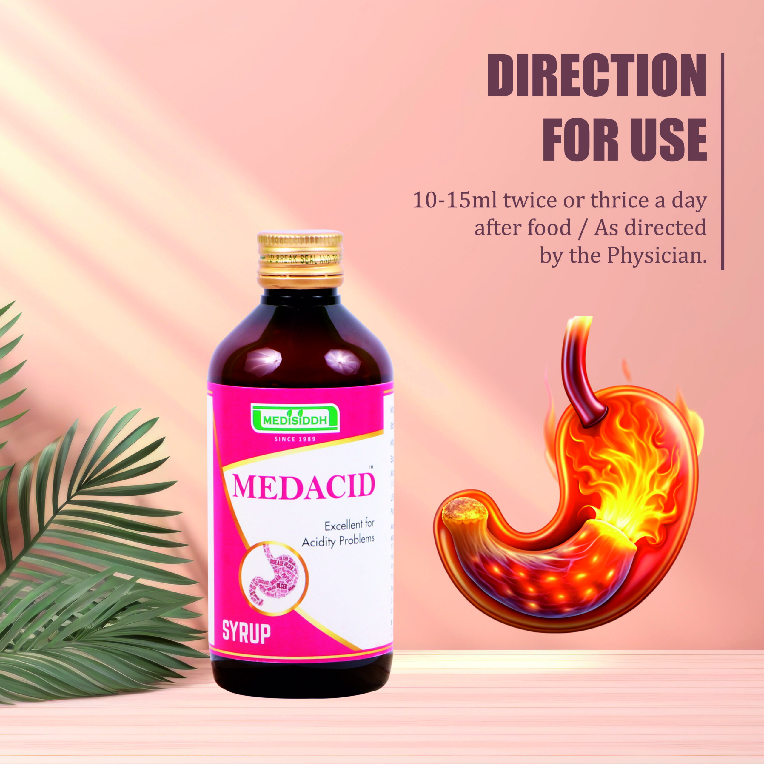 Medacid Syrup is formulated using traditional Siddha ingredients to balance excess acid in the stomach.