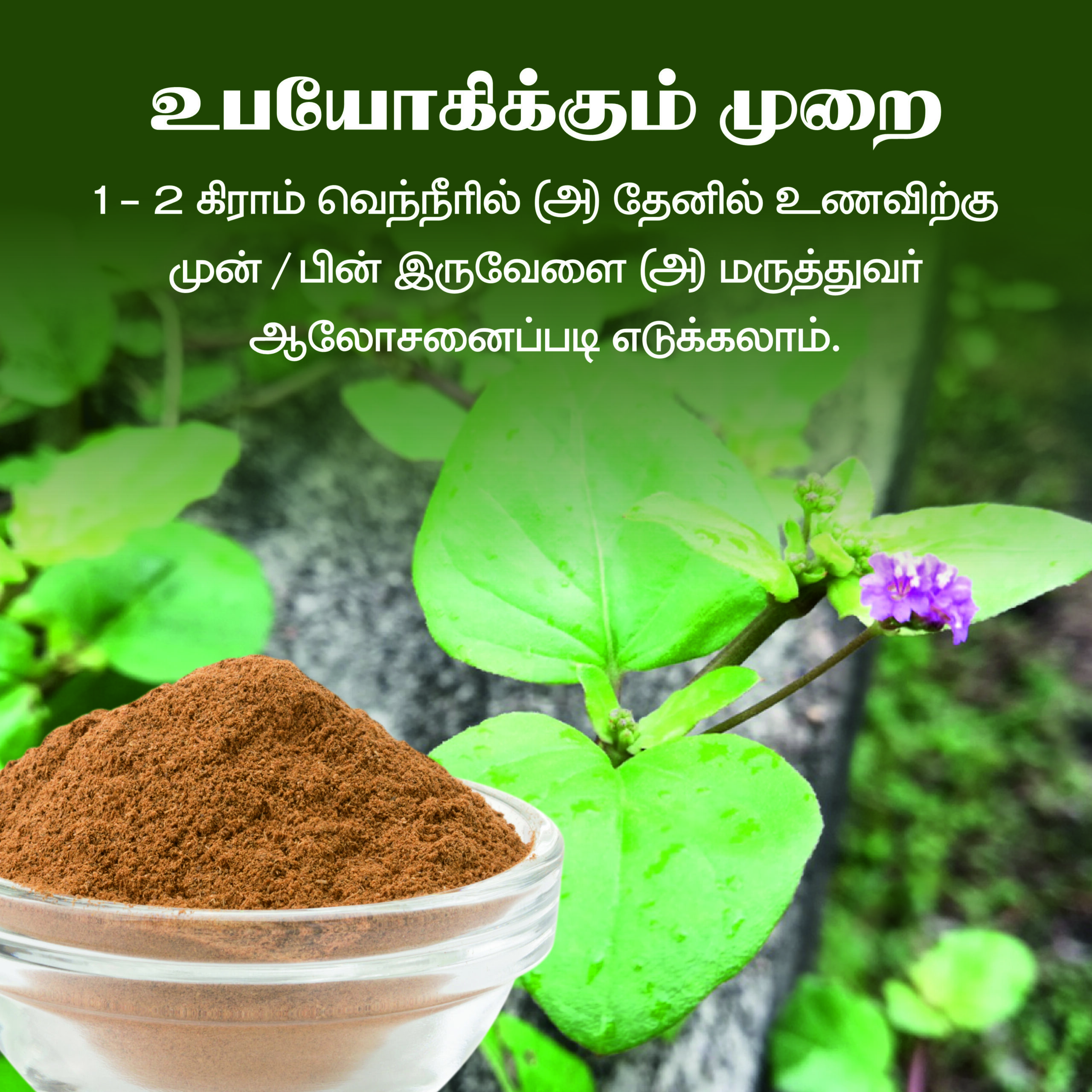 🟢 1/4 – 1/2 teaspoon மூக்கிரட்டை இலை பொடியை