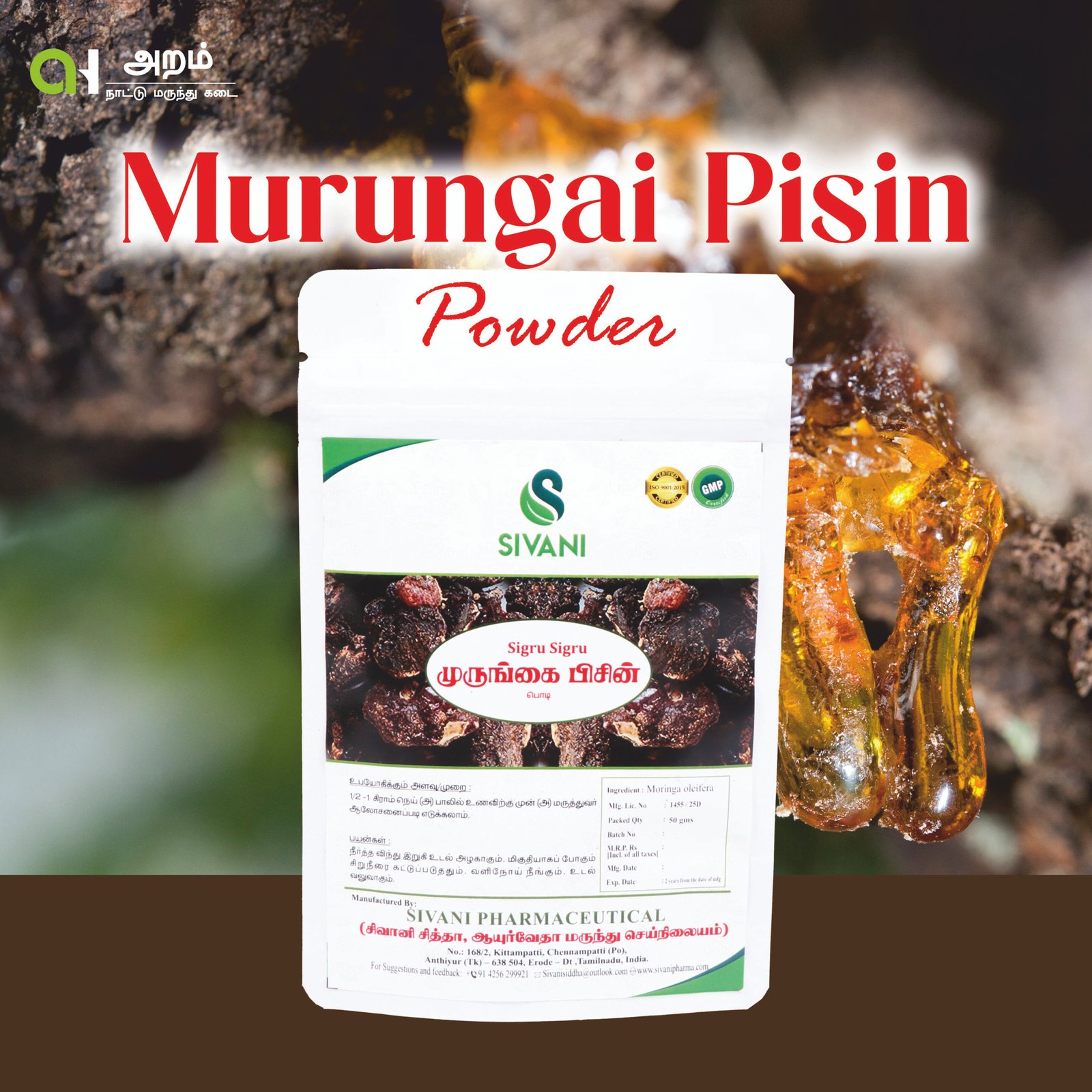 🌿 Prepared from pure, naturally collected Murungai gum, cleaned and finely powdered