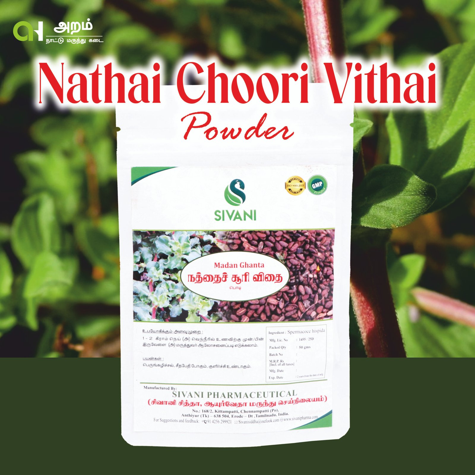 Nathai Choori Vithai is well-known in Siddha medicine for its strengthening, detoxifying, and balancing properties. It is especially valued for supporting uterine health, menstrual balance, and general body wellness.