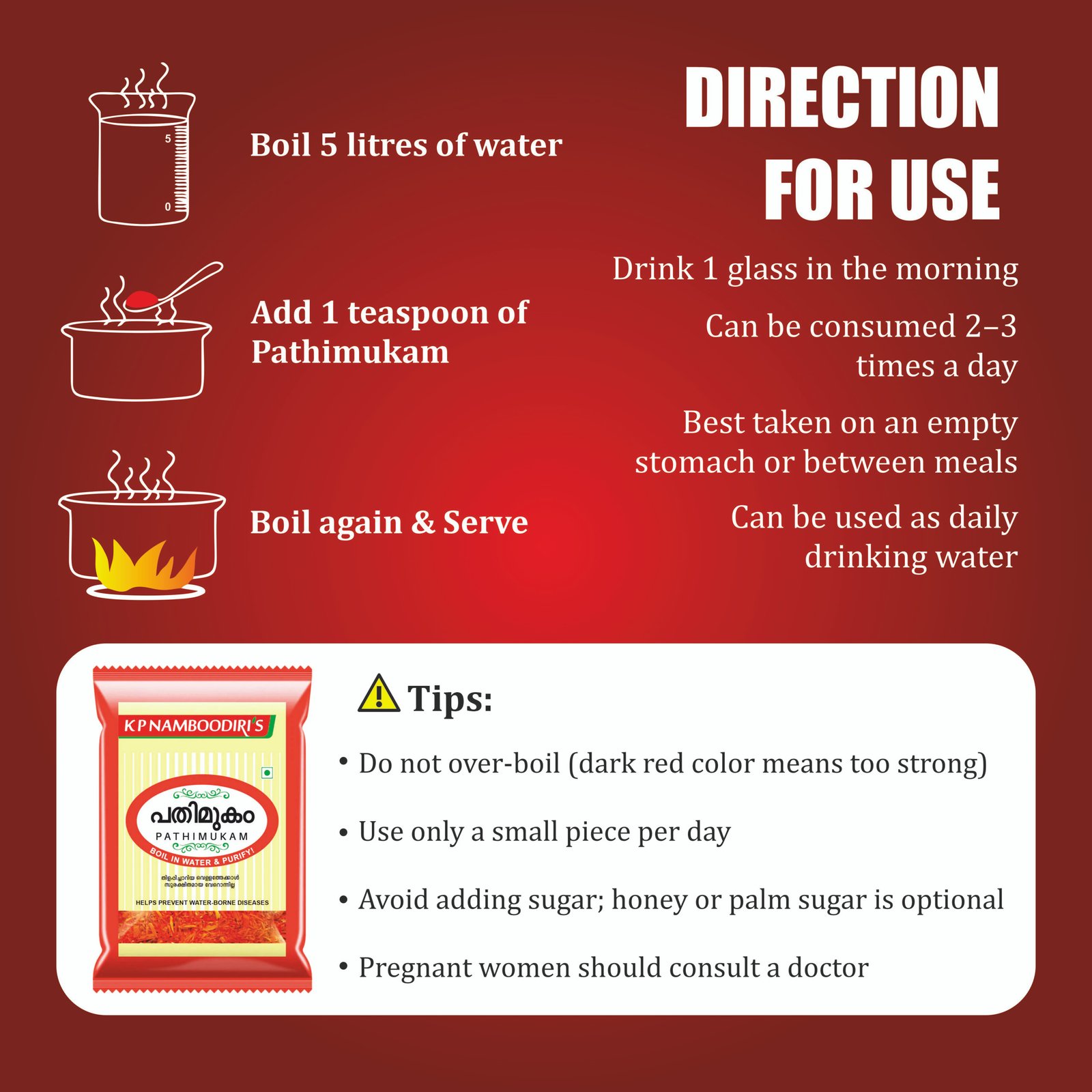 It is widely used to help prevent water-borne diseases, improve gut health, reduce body heat, and promote daily wellness. Pathimukam water is gentle, natural, and suitable for regular consumption.