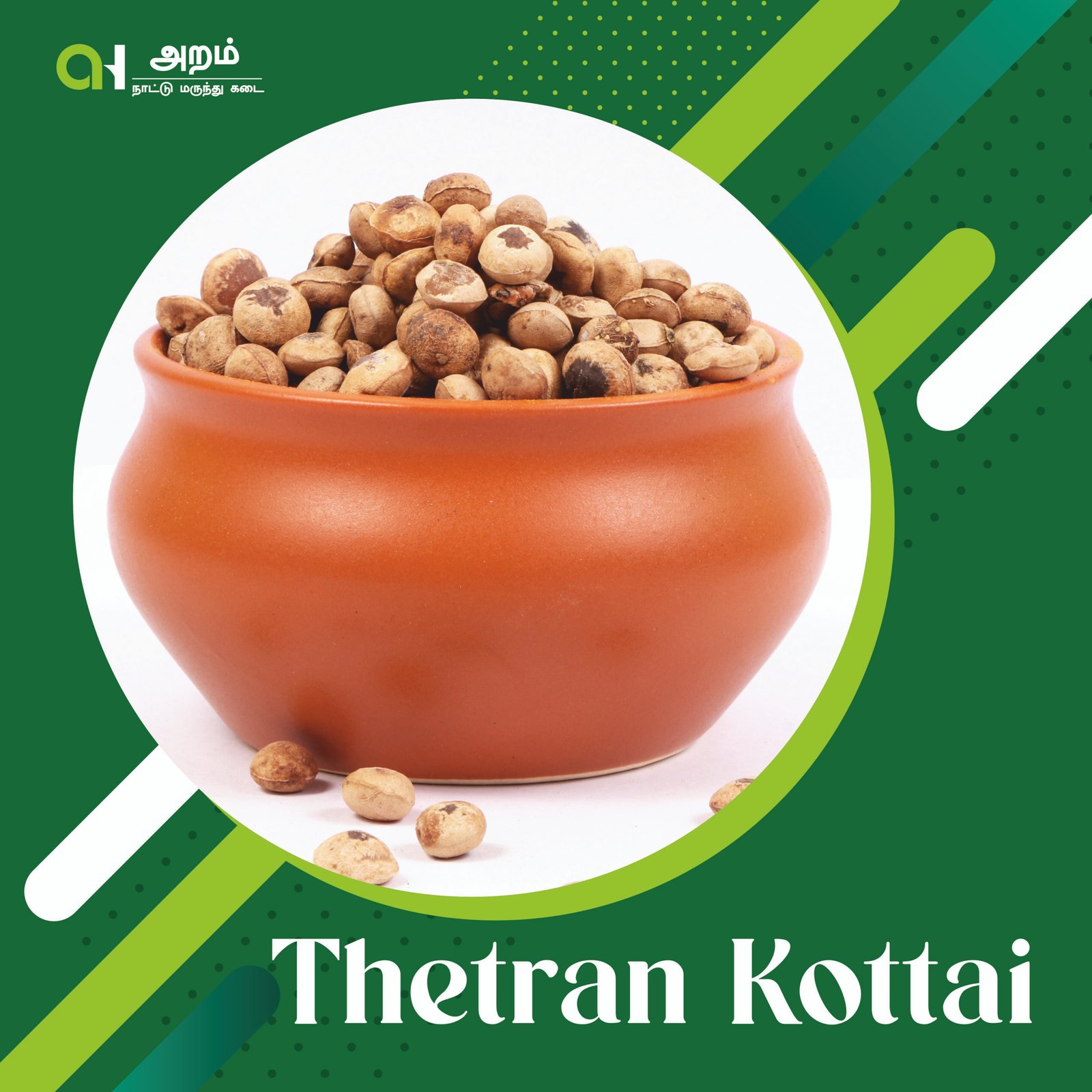 Thetran Kottai (தேற்றன் கொட்டை), also known as Clearing Nut / Nirmali Seeds, is a traditional natural seed widely used for water purification, eye care, skin care, and Siddha & Ayurvedic practices. Known for its natural detoxifying and cleansing properties.