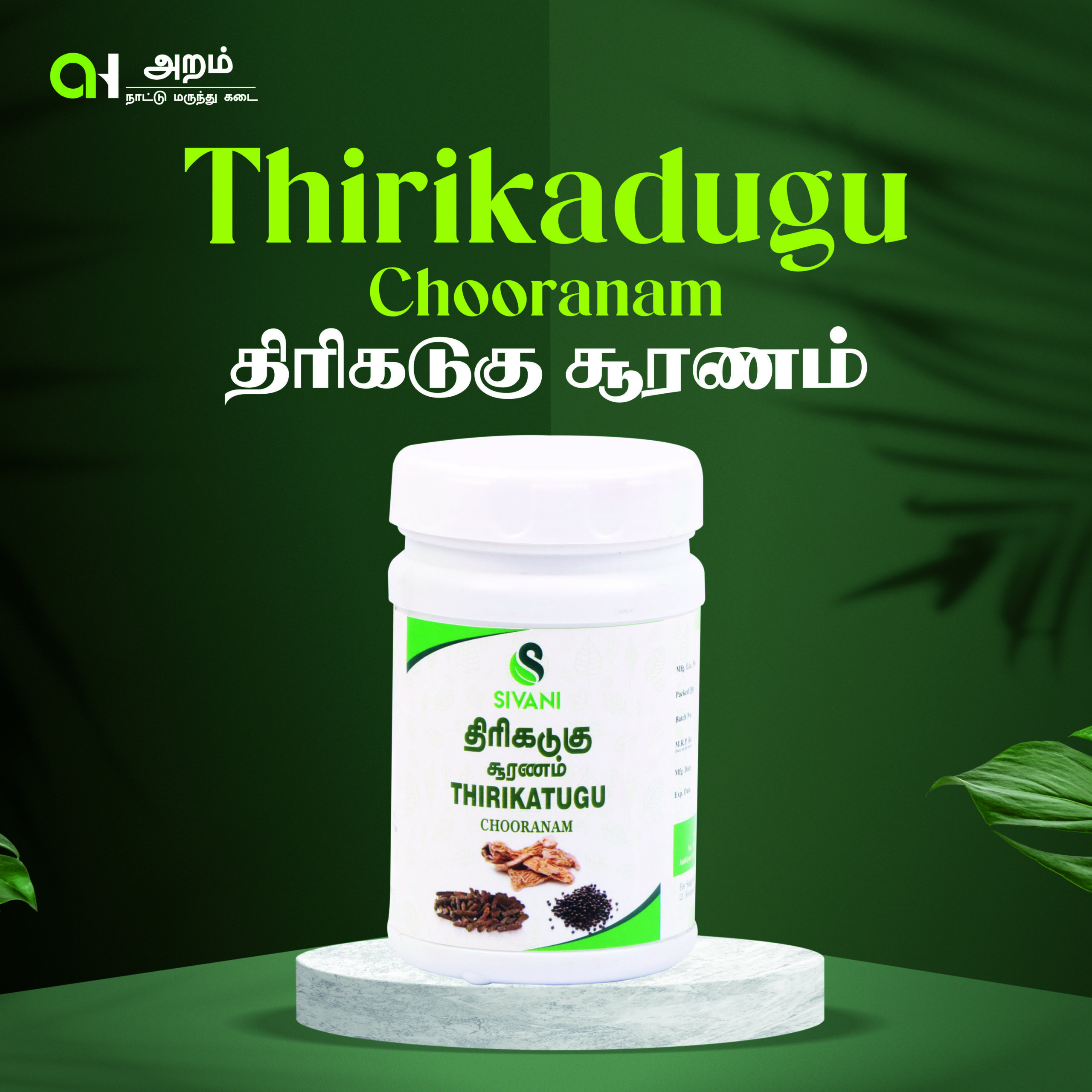 Thirikadugu Chooranam is a traditional Siddha medicine prepared using the powerful combination of three pungent herbs, following authentic Siddha principles. It is well known for improving digestive fire (Agni) and balancing Vatham & Kabham.