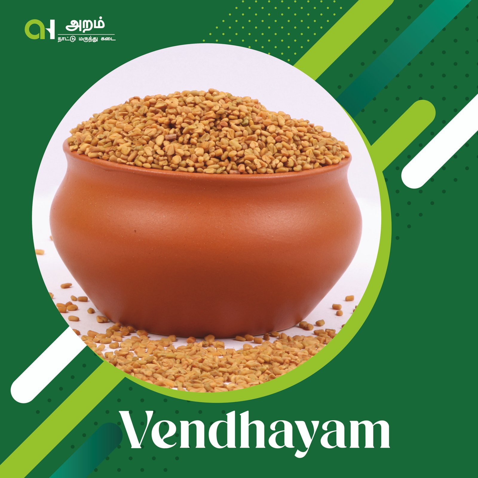 Vendhayam is sourced from high-quality fenugreek seeds, carefully cleaned and naturally dried to preserve its distinct aroma, mild bitterness, and rich medicinal value. It plays an essential role in daily cooking, herbal remedies, and traditional medicines.